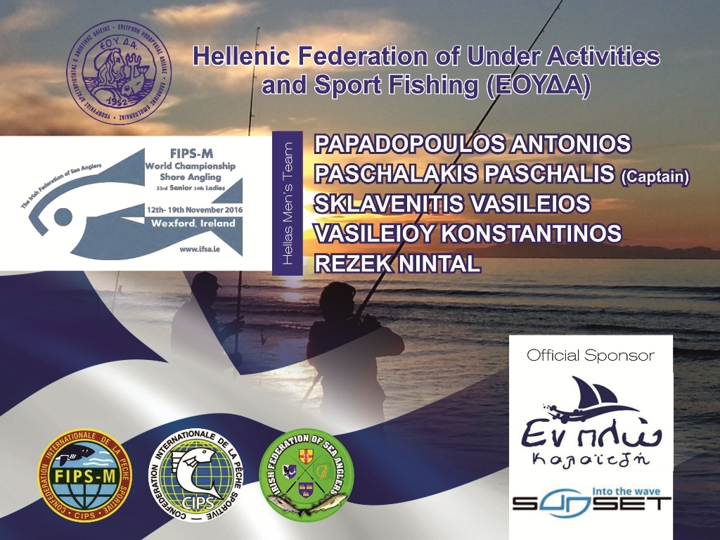 Η αντίστροφη μέτρηση για το Παγκόσμιο Πρωτάθλημα Shore Angling (casting) που θα πραγματοποιηθεί στην Ιρλανδία έχει ήδη ξεκινήσει και η Εθνική μας Ομάδα θα έχει στο πλευρό της στην προσπάθεια αυτή την εταιρία Sunset μέσο του αντιπροσώπου της στην Ελλάδα την εταιρία Εν πλώ του κ. Χρήστου Καλαϊτζή τον οποιο και ευχαριστουμε πολυ.